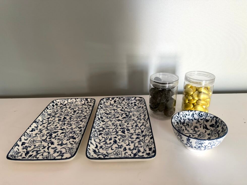 * 2 x blue designed serving dishes and bowl